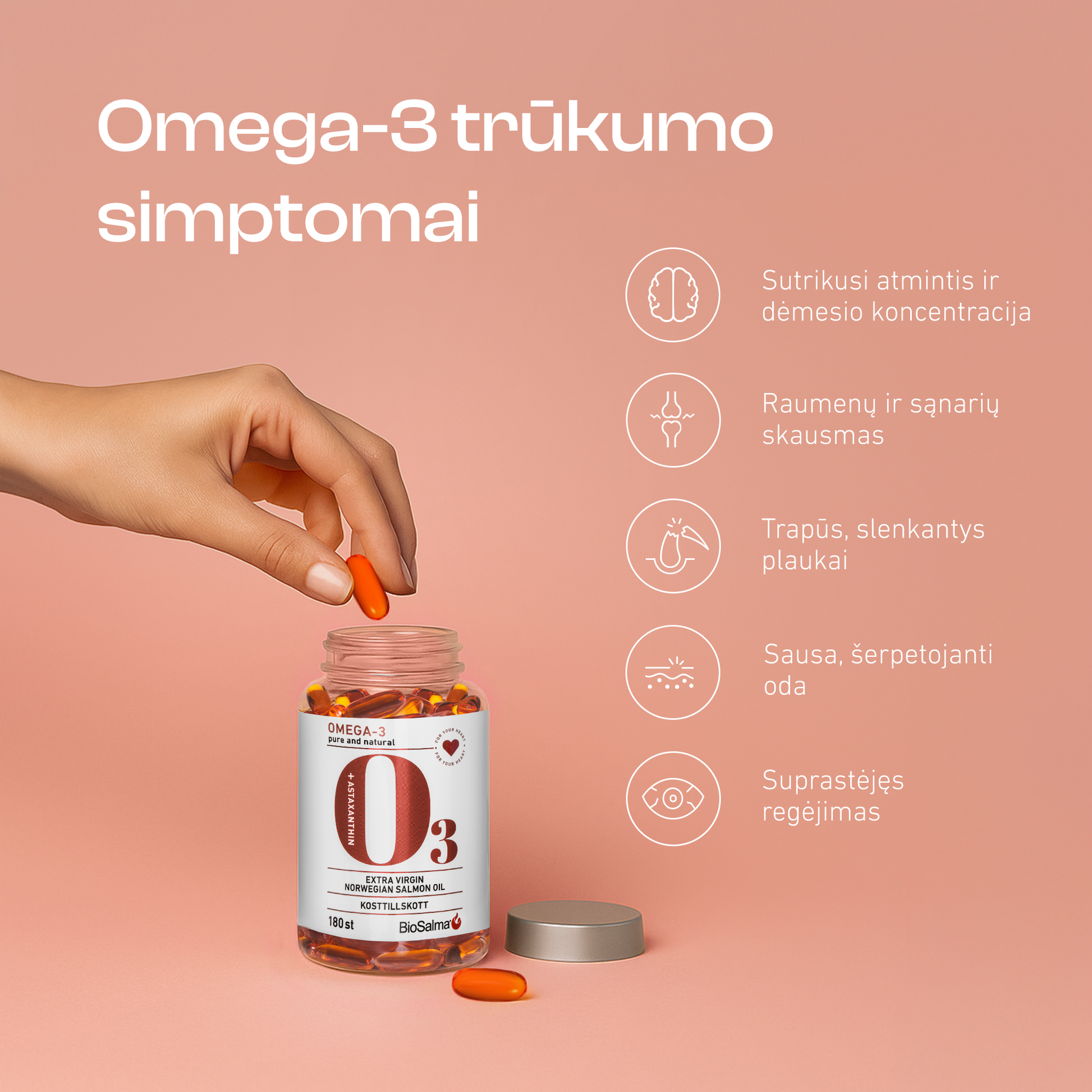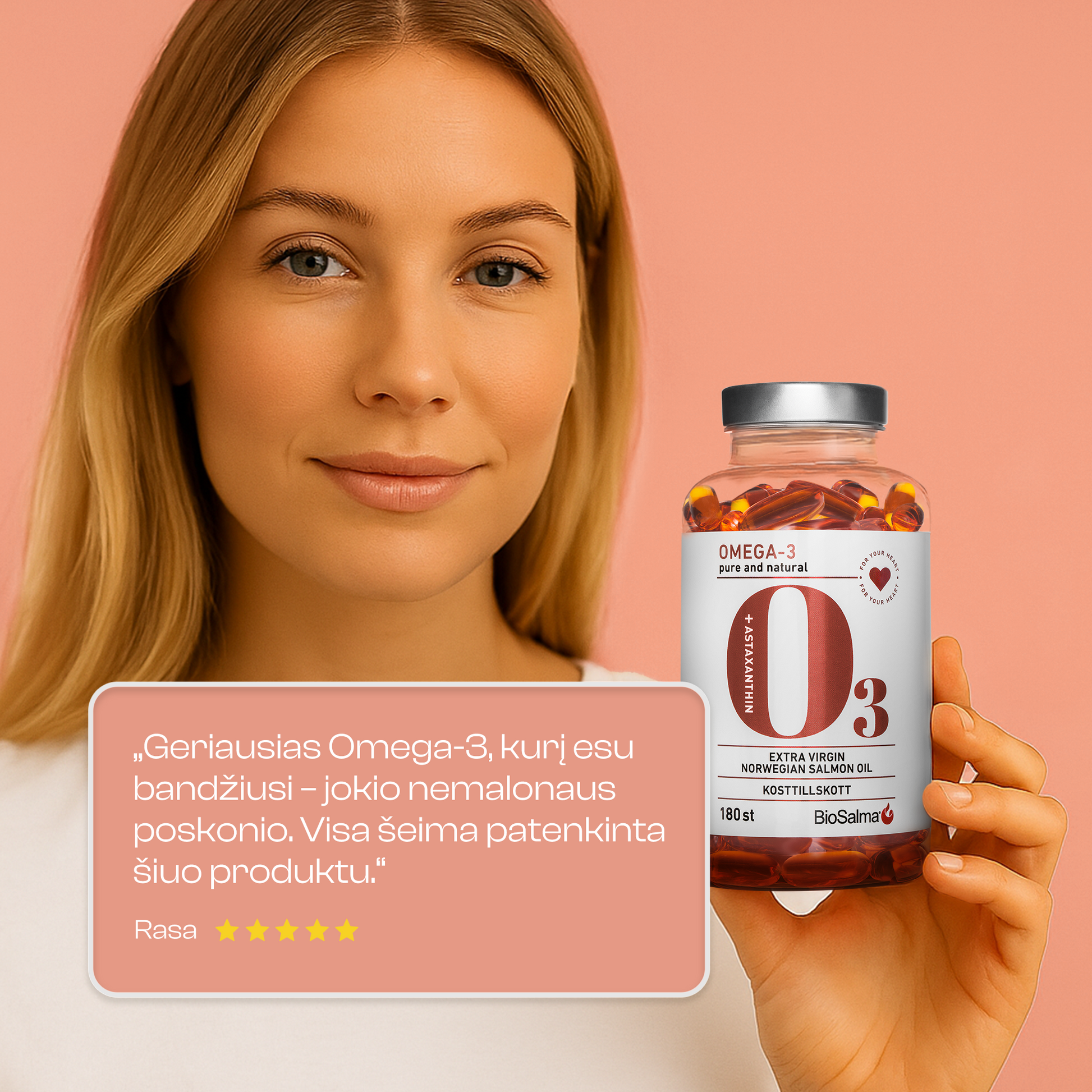 Omega-3 fatty acids are essential for heart, brain, and immune health, yet most Europeans do not get enough from their diet. Learn how to recognize the signs of Omega-3 deficiency and choose the most suitable BioSalma supplement: natural salmon oil, concentrated forte, vegan from algae, or tasty Tutti Frutti for kids.