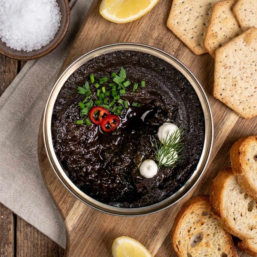 - Išskirtinis vaizdas: sodriai juoda spalva traukia akį kiekvienoje užkandžių lėkštėje