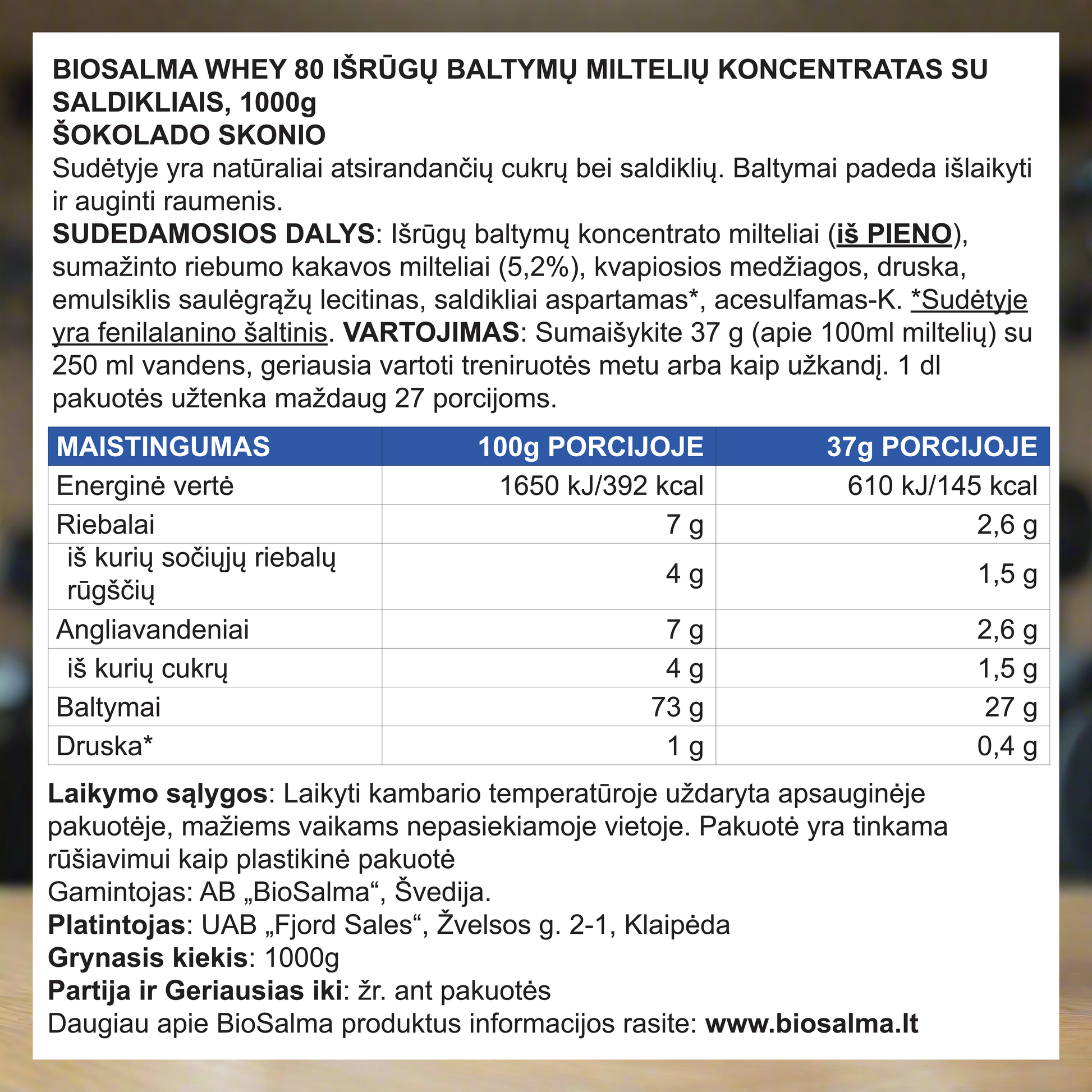 Наряду с обычной диетой, BioSalma Whey Protein может помочь восполнить ежедневную потребность в белке, который необходим для многих функций организма, не только для восстановления мышц, но также для производства гормонов и ферментов.